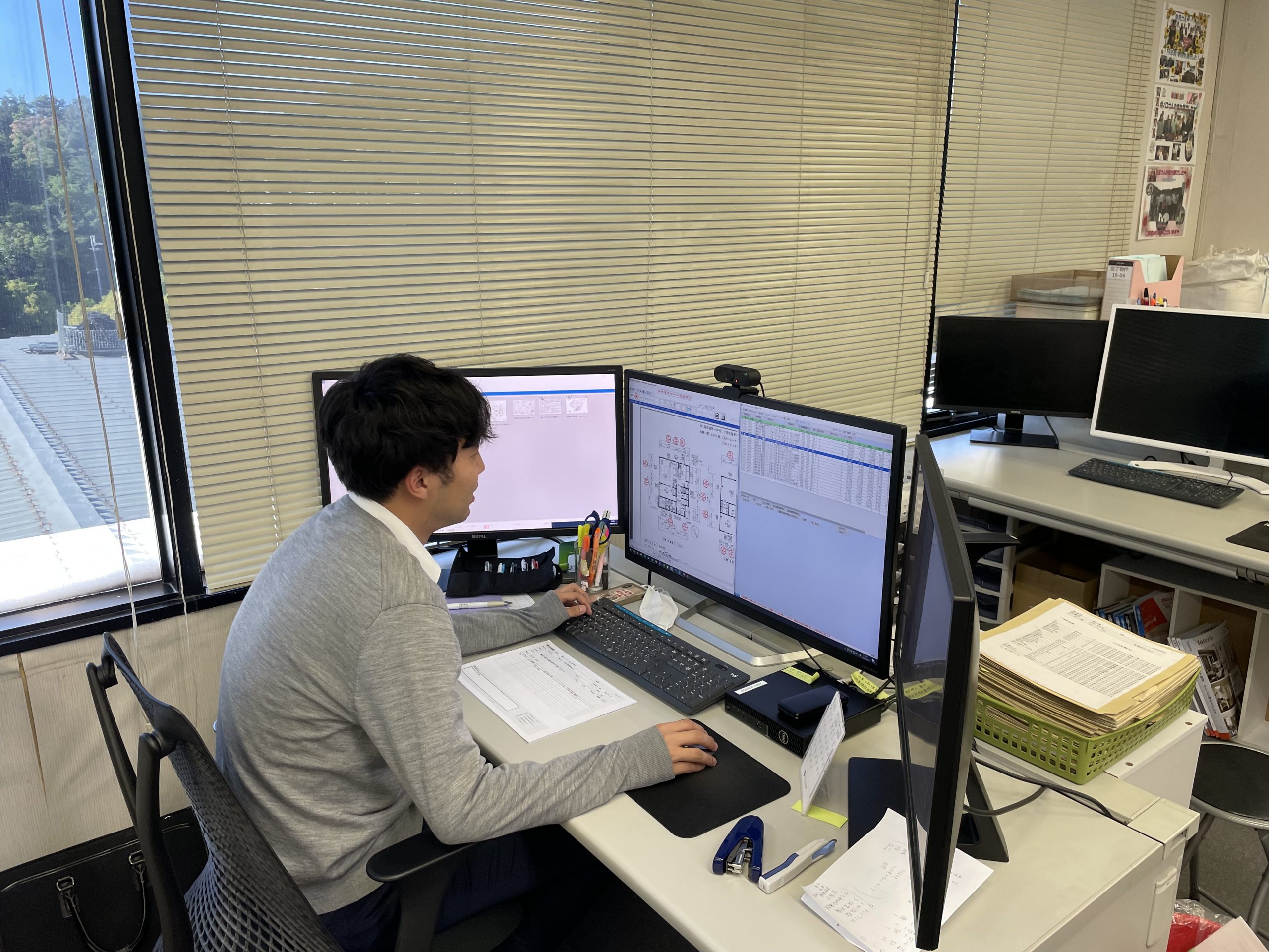 岡本:ビル建材営業部は、わりと他部署との関わりも多い職種だと思います。特に、積算部や設計部とは業務上で関わりがあります。基本的にはみんな話しやすい雰囲気です。